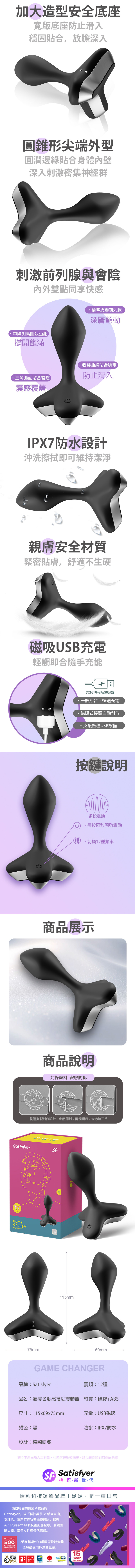 品名:Satisfyer|Game Changer|顛覆者 潮感後庭震動器 黑